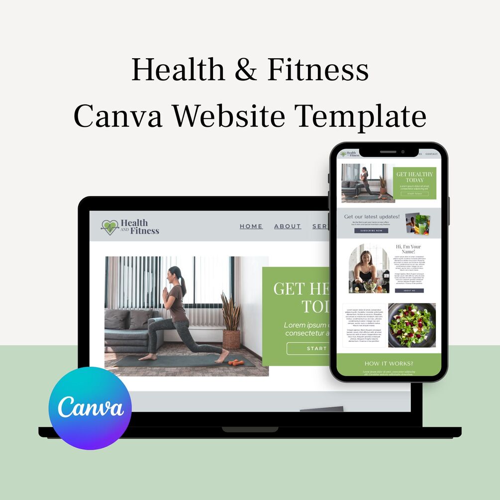 You'll get a health & fitness Canva website template and a Canva starter guide.